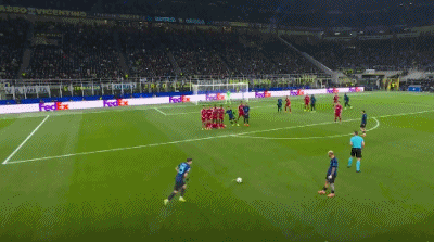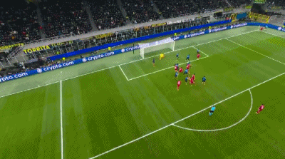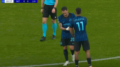 第13分钟,劳塔罗飞铲放倒罗伯逊,被黄牌警告