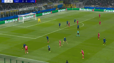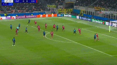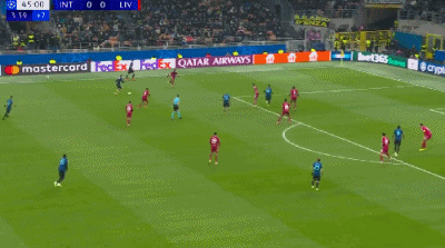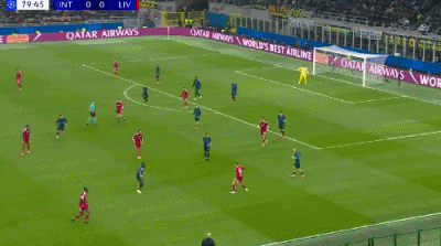 第45+6分钟,劳塔罗头球攻门,阿利松倒地将球扑出